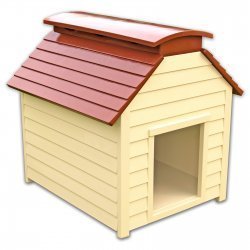 The Bungalow Dog House is high tech but low on maintenance. Multilayer panels insulate the dog house, keeping it warm in the winter and cool in the summer. Plastic paneling also makes these dog houses easy to clean, simply wash off with the garden hose. No tools are required for assembly, all the pieces snap together. Details like a drain in the floor, air vents and insulation cover every necessity. Durable plastic construction can stand up to the most extreme weather, ensuring it can be enjoyed for years to come. Comes in cream with a brown roof. Made of plastic. Assembly level/degree of difficulty: Easy.